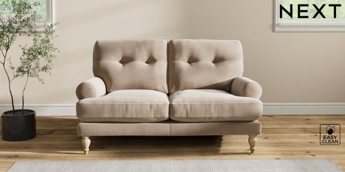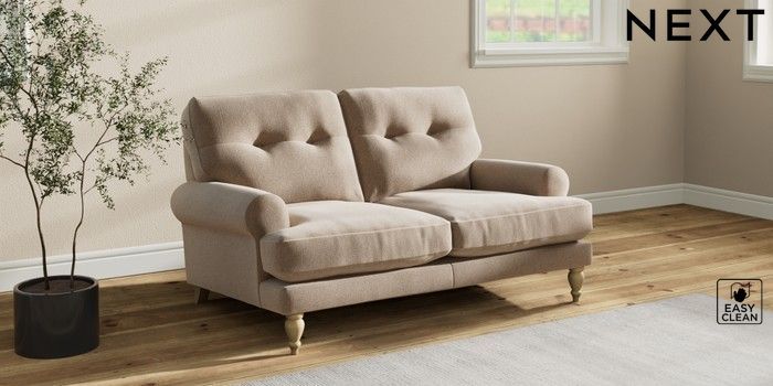 7.2.10 Erin Buttoned Back Deep Relaxed Sit 2 Seater Small Sofa Tweedy Blend Easy Clean Light Dove Natural High Classic Turned - Light | Made Click here to use our website with more accessibility support, for example screen readers