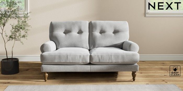 7.2.10 Erin Buttoned Back Deep Relaxed Sit 2 Seater Small Sofa Tweedy Blend Easy Clean Light Silver Grey High Classic Turned - Mid | Made Click here to use our website with more accessibility support, for example screen readers