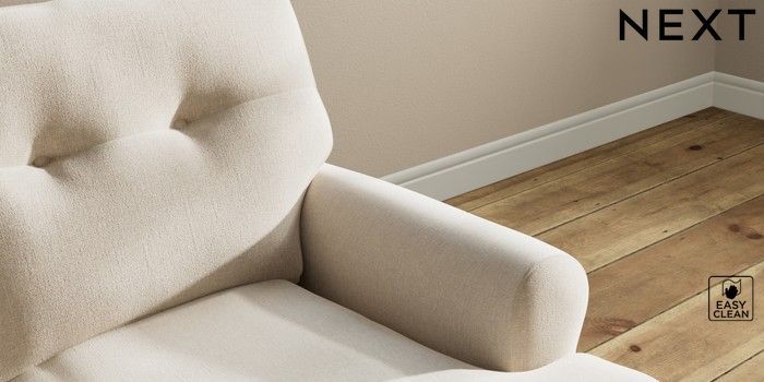 7.2.10 Erin Buttoned Back Deep Relaxed Sit 2 Seater Small Sofa Tweedy Blend Easy Clean Oyster High Classic Turned Brass Castor - Light | Made Click here to use our website with more accessibility support, for example screen readers