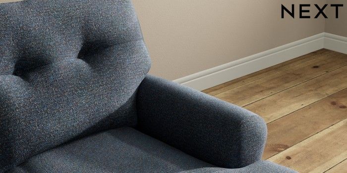 7.2.10 Erin Buttoned Back Deep Relaxed Sit 2 Seater Small Sofa Tweedy Chenille Navy Blue High Classic Turned Chrome Castor - Mid | Made Click here to use our website with more accessibility support, for example screen readers