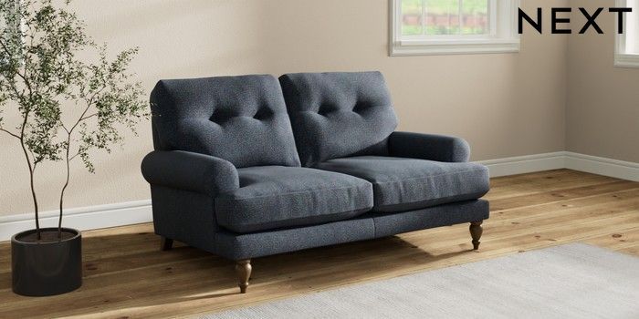 7.2.10 Erin Buttoned Back Deep Relaxed Sit 2 Seater Small Sofa Tweedy Chenille Navy Blue High Classic Turned - Mid | Made Click here to use our website with more accessibility support, for example screen readers