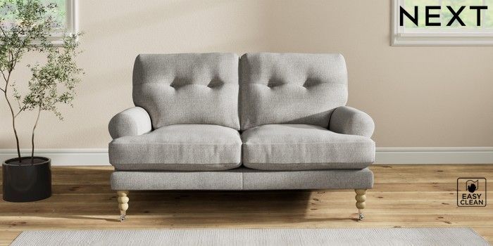 7.2.10 Erin Buttoned Back Deep Relaxed Sit 2 Seater Small Sofa Woven Chenille Easy Clean Light Grey High Classic Turned Chrome Castor - Light | Made Click here to use our website with more accessibility support, for example screen readers