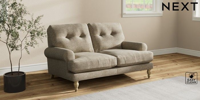 7.2.10 Erin Buttoned Back Deep Relaxed Sit 2 Seater Small Sofa Woven Chenille Easy Clean Mid Natural High Classic Turned - Light | Made Click here to use our website with more accessibility support, for example screen readers