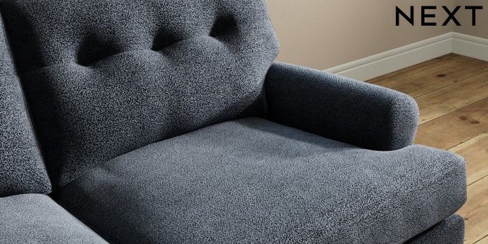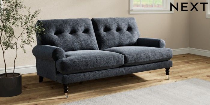 7.2.10 Erin Buttoned Back Deep Relaxed Sit 3 Seater Small Sofa Boucle Chenille Dark Slate Blue High Classic Turned Chrome Castor - Dark | Made Click here to use our website with more accessibility support, for example screen readers