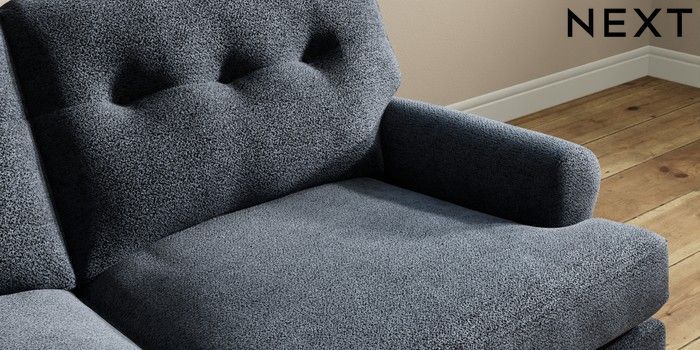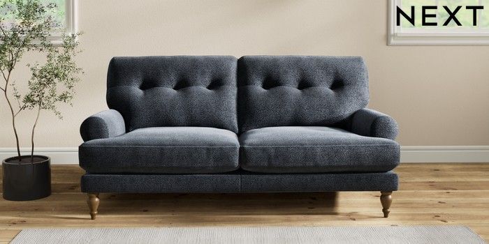 7.2.10 Erin Buttoned Back Deep Relaxed Sit 3 Seater Small Sofa Boucle Chenille Dark Slate Blue High Classic Turned - Mid | Made Click here to use our website with more accessibility support, for example screen readers