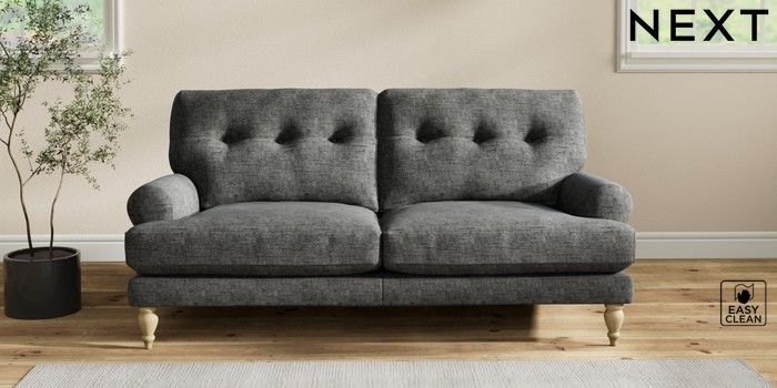 7.2.10 Erin Buttoned Back Deep Relaxed Sit 3 Seater Small Sofa Boucle Weave Easy Clean Charcoal Grey High Classic Turned - Light | Made Click here to use our website with more accessibility support, for example screen readers