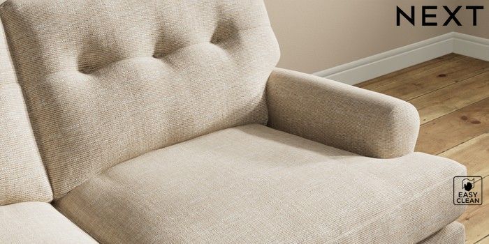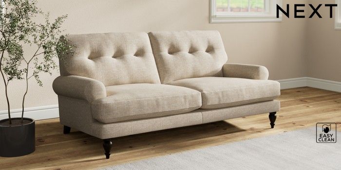 7.2.10 Erin Buttoned Back Deep Relaxed Sit 3 Seater Small Sofa Boucle Weave Easy Clean Dark Natural High Classic Turned - Dark | Made Click here to use our website with more accessibility support, for example screen readers