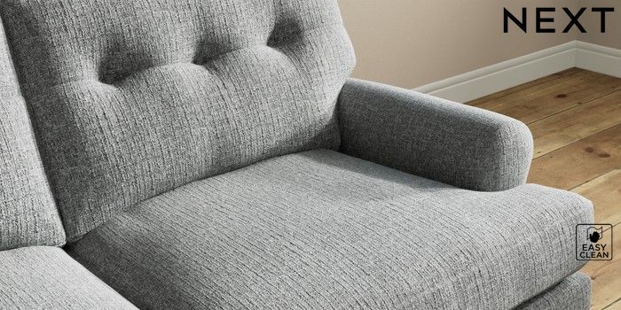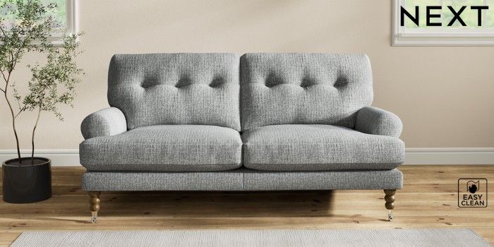 7.2.10 Erin Buttoned Back Deep Relaxed Sit 3 Seater Small Sofa Chunky Boucle Easy Clean Mid Grey High Classic Turned Chrome Castor - Mid | Made Click here to use our website with more accessibility support, for example screen readers