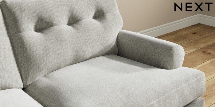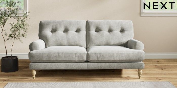 7.2.10 Erin Buttoned Back Deep Relaxed Sit 3 Seater Small Sofa Chunky Chenille Light Grey High Classic Turned - Light | Made Click here to use our website with more accessibility support, for example screen readers