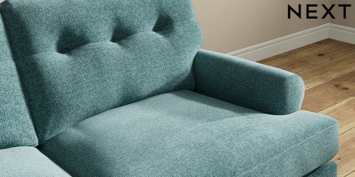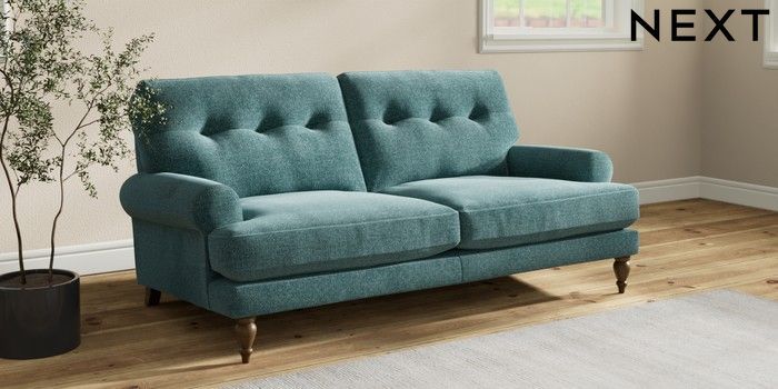7.2.10 Erin Buttoned Back Deep Relaxed Sit 3 Seater Small Sofa Chunky Chenille Mid Teal Green High Classic Turned - Mid | Made Click here to use our website with more accessibility support, for example screen readers