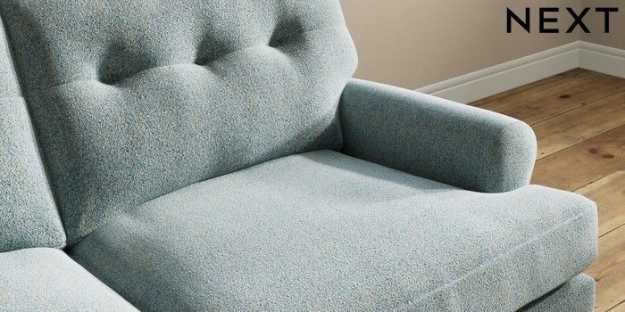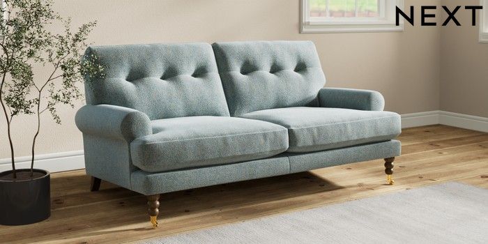 7.2.10 Erin Buttoned Back Deep Relaxed Sit 3 Seater Small Sofa Chunky Marl Mid Blue High Classic Turned Brass Castor - Mid | Made Click here to use our website with more accessibility support, for example screen readers