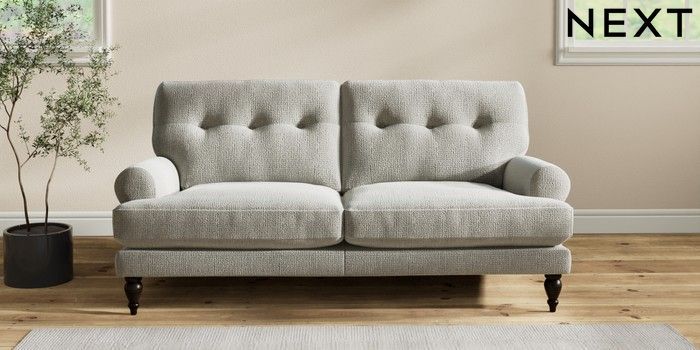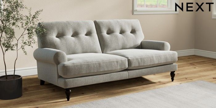 7.2.10 Erin Buttoned Back Deep Relaxed Sit 3 Seater Small Sofa Chunky Texture Dove High Classic Turned - Dark | Made Click here to use our website with more accessibility support, for example screen readers