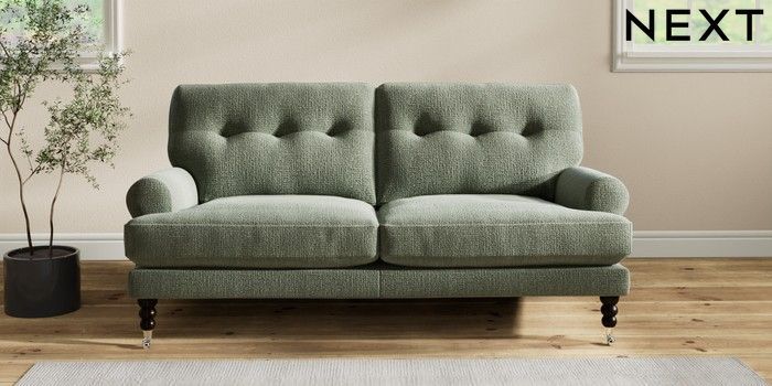 7.2.10 Erin Buttoned Back Deep Relaxed Sit 3 Seater Small Sofa Chunky Texture Mid Forest Green High Classic Turned Chrome Castor - Dark | Made Click here to use our website with more accessibility support, for example screen readers