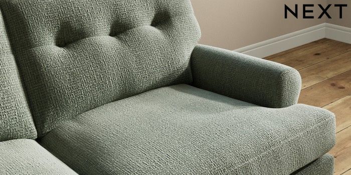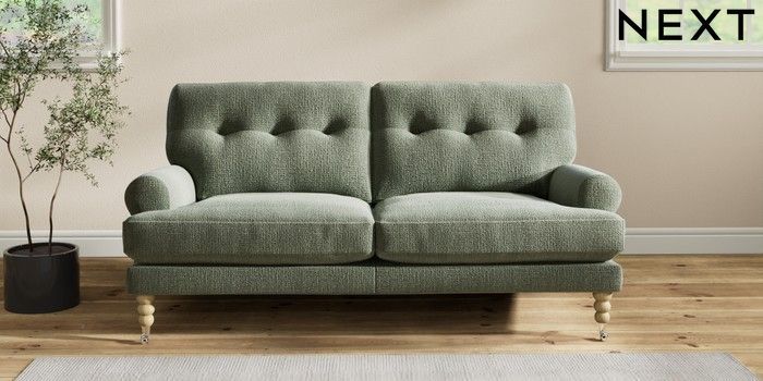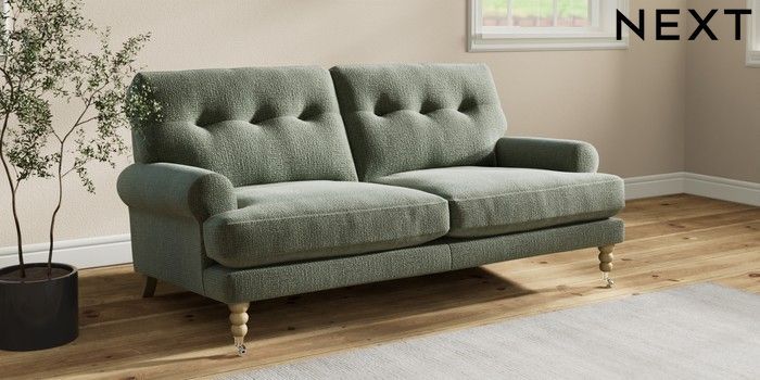 7.2.10 Erin Buttoned Back Deep Relaxed Sit 3 Seater Small Sofa Chunky Texture Mid Forest Green High Classic Turned Chrome Castor - Light | Made Click here to use our website with more accessibility support, for example screen readers