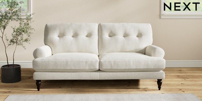 7.2.10 Erin Buttoned Back Deep Relaxed Sit 3 Seater Small Sofa Chunky Texture Oyster High Classic Turned - Dark | Made Click here to use our website with more accessibility support, for example screen readers