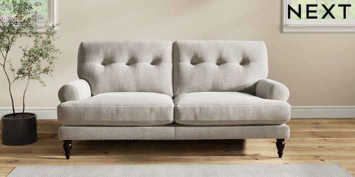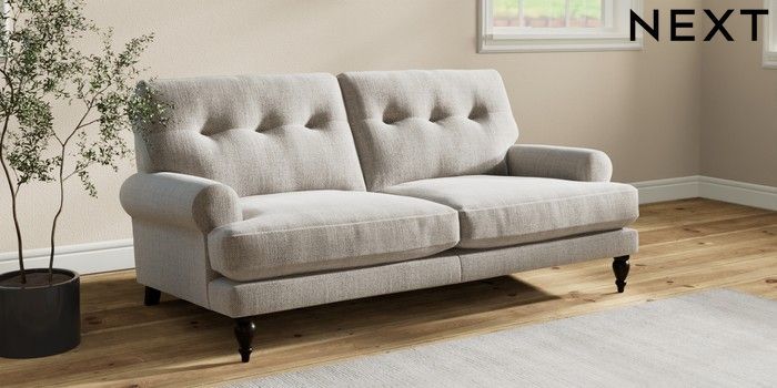 7.2.10 Erin Buttoned Back Deep Relaxed Sit 3 Seater Small Sofa Chunky Weave Dove Grey High Classic Turned - Dark | Made Click here to use our website with more accessibility support, for example screen readers