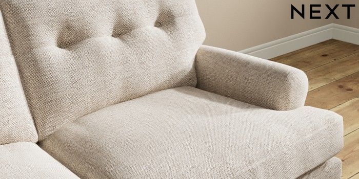 7.2.10 Erin Buttoned Back Deep Relaxed Sit 3 Seater Small Sofa Chunky Weave Mid Natural High Classic Turned Chrome Castor - Dark | Made Click here to use our website with more accessibility support, for example screen readers