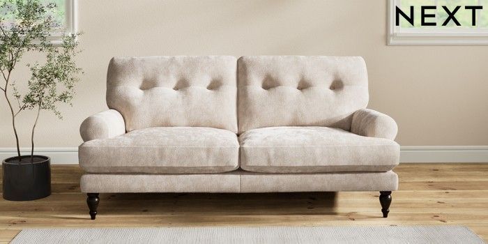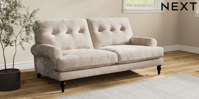 7.2.10 Erin Buttoned Back Deep Relaxed Sit 3 Seater Small Sofa Distressed Velour Mid Natural High Classic Turned - Dark | Made Click here to use our website with more accessibility support, for example screen readers