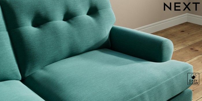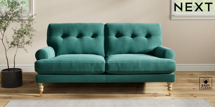 7.2.10 Erin Buttoned Back Deep Relaxed Sit 3 Seater Small Sofa Fine Chenille Easy Clean Dark Juniper Green High Classic Turned Brass Castor - Light | Made Click here to use our website with more accessibility support, for example screen readers