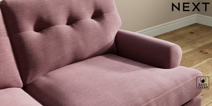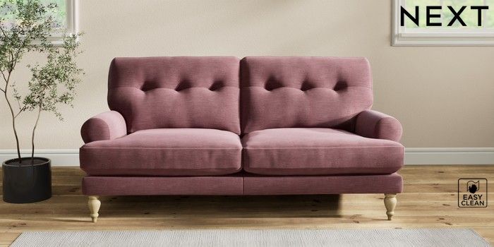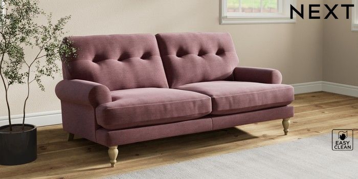 7.2.10 Erin Buttoned Back Deep Relaxed Sit 3 Seater Small Sofa Fine Chenille Easy Clean Mid Mulberry Purple High Classic Turned - Light | Made Click here to use our website with more accessibility support, for example screen readers