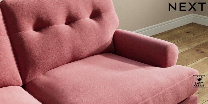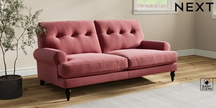 7.2.10 Erin Buttoned Back Deep Relaxed Sit 3 Seater Small Sofa Fine Chenille Easy Clean Mid Pink High Classic Turned - Dark | Made Click here to use our website with more accessibility support, for example screen readers