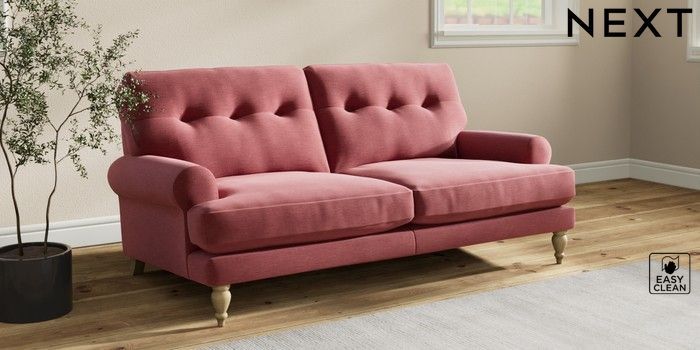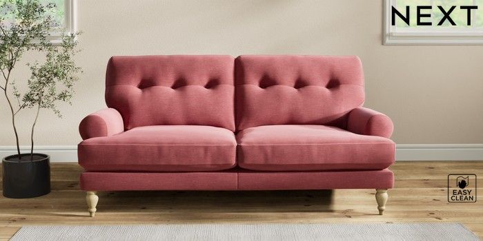 7.2.10 Erin Buttoned Back Deep Relaxed Sit 3 Seater Small Sofa Fine Chenille Easy Clean Mid Pink High Classic Turned - Light | Made Click here to use our website with more accessibility support, for example screen readers