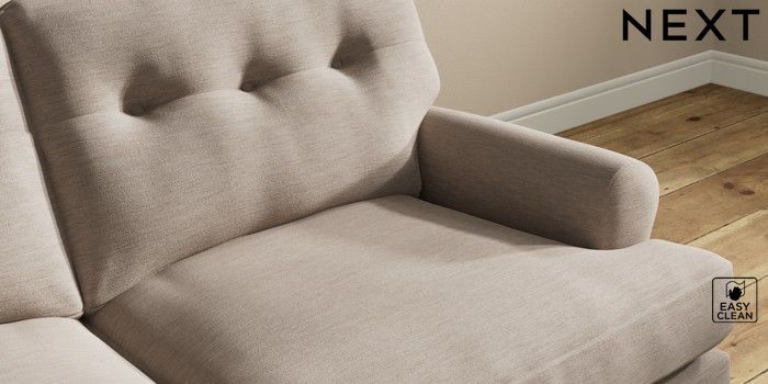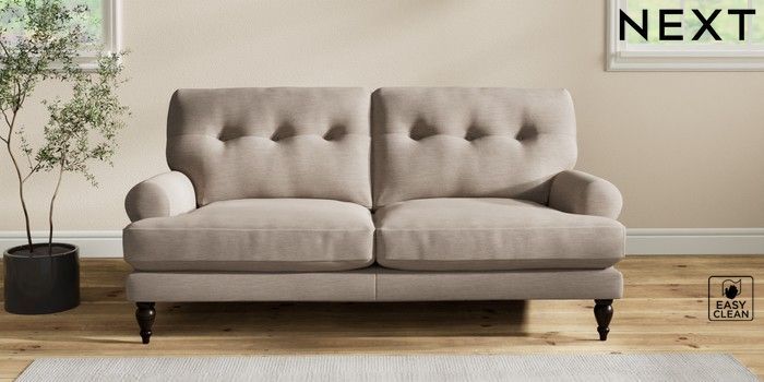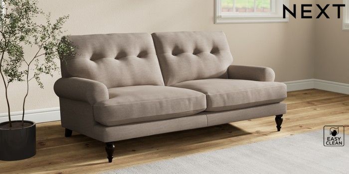 7.2.10 Erin Buttoned Back Deep Relaxed Sit 3 Seater Small Sofa Fine Chenille Easy Clean Mid Taupe Brown High Classic Turned - Dark | Made Click here to use our website with more accessibility support, for example screen readers