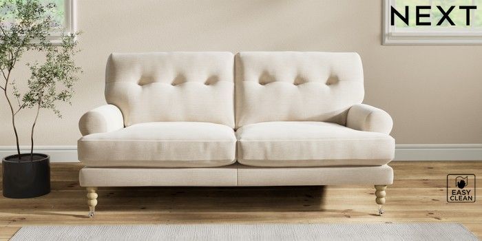 7.2.10 Erin Buttoned Back Deep Relaxed Sit 3 Seater Small Sofa Fine Chenille Easy Clean Oyster High Classic Turned Chrome Castor - Light | Made Click here to use our website with more accessibility support, for example screen readers