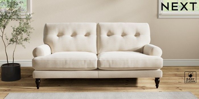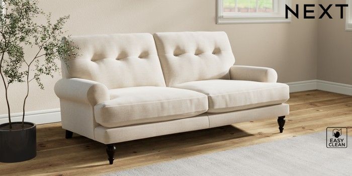 7.2.10 Erin Buttoned Back Deep Relaxed Sit 3 Seater Small Sofa Fine Chenille Easy Clean Oyster High Classic Turned - Dark | Made Click here to use our website with more accessibility support, for example screen readers