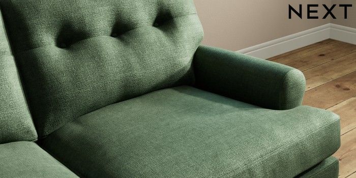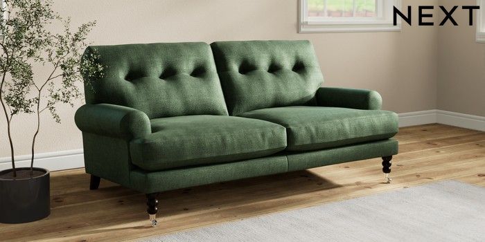 7.2.10 Erin Buttoned Back Deep Relaxed Sit 3 Seater Small Sofa Luxe Chenille Dark Green High Classic Turned Chrome Castor - Dark | Made Click here to use our website with more accessibility support, for example screen readers