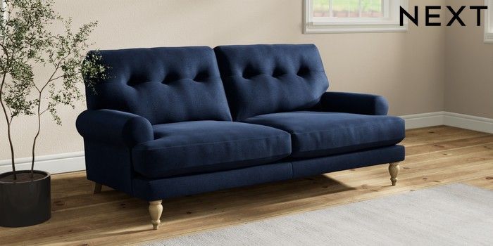 7.2.10 Erin Buttoned Back Deep Relaxed Sit 3 Seater Small Sofa Luxe Chenille Navy Blue High Classic Turned - Light | Made Click here to use our website with more accessibility support, for example screen readers