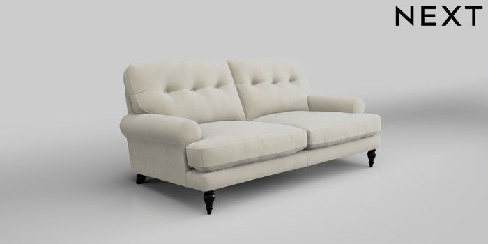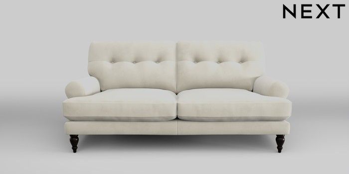 7.2.10 Erin Buttoned Back Deep Relaxed Sit 3 Seater Small Sofa Luxe Chenille Oyster High Classic Turned - Dark | Made Click here to use our website with more accessibility support, for example screen readers