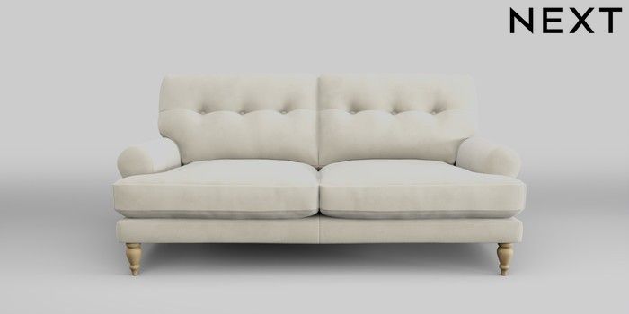 7.2.10 Erin Buttoned Back Deep Relaxed Sit 3 Seater Small Sofa Luxe Chenille Oyster High Classic Turned - Light | Made Click here to use our website with more accessibility support, for example screen readers