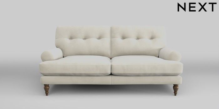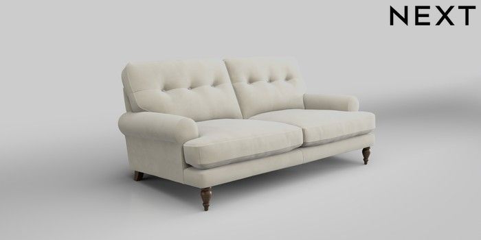 7.2.10 Erin Buttoned Back Deep Relaxed Sit 3 Seater Small Sofa Luxe Chenille Oyster High Classic Turned - Mid | Made Click here to use our website with more accessibility support, for example screen readers