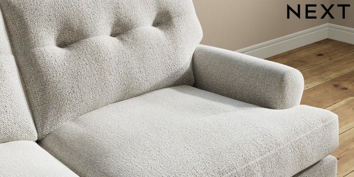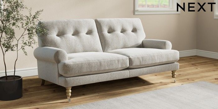 7.2.10 Erin Buttoned Back Deep Relaxed Sit 3 Seater Small Sofa Multi Weave Light Blue High Classic Turned Chrome Castor - Light | Made Click here to use our website with more accessibility support, for example screen readers