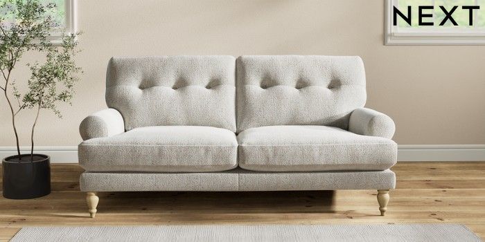 Add charm to your living space with the Erin Button Back Sofa. Its elegant scroll arms and classic button-back cushions create a timeless look. You'll love its "Relaxed Sit" cushions, specially designed for ultimate comfort. These cushions are made with clever foam and fibre, giving you a wonderfully soft, plump feel. To keep them looking their best, simply plump and turn them regularly. Plus, you can make the Erin your own by choosing from a huge range of coloured fabrics.