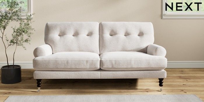 7.2.10 Erin Buttoned Back Deep Relaxed Sit 3 Seater Small Sofa Multi Weave Oyster High Classic Turned Chrome Castor - Dark | Made Click here to use our website with more accessibility support, for example screen readers