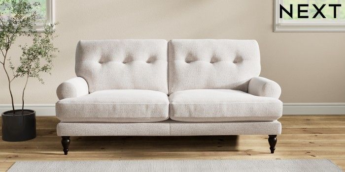 7.2.10 Erin Buttoned Back Deep Relaxed Sit 3 Seater Small Sofa Multi Weave Oyster High Classic Turned - Dark | Made Click here to use our website with more accessibility support, for example screen readers