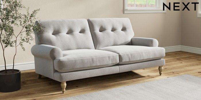 7.2.10 Erin Buttoned Back Deep Relaxed Sit 3 Seater Small Sofa Natural Mix Light Grey High Classic Turned - Light | Made Click here to use our website with more accessibility support, for example screen readers