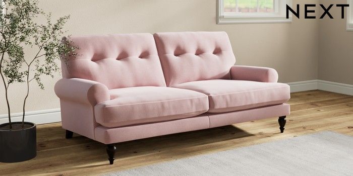 7.2.10 Erin Buttoned Back Deep Relaxed Sit 3 Seater Small Sofa Natural Mix Light Rose Pink High Classic Turned - Dark | Made Click here to use our website with more accessibility support, for example screen readers