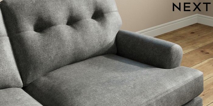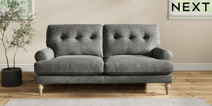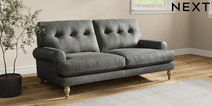 7.2.10 Erin Buttoned Back Deep Relaxed Sit 3 Seater Small Sofa Plush Chenille Dark Grey High Classic Turned - Light | Made Click here to use our website with more accessibility support, for example screen readers