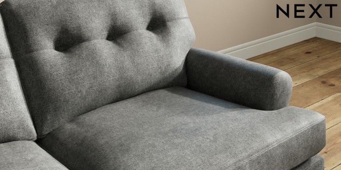 7.2.10 Erin Buttoned Back Deep Relaxed Sit 3 Seater Small Sofa Plush Chenille Dark Grey High Classic Turned - Mid | Made Click here to use our website with more accessibility support, for example screen readers