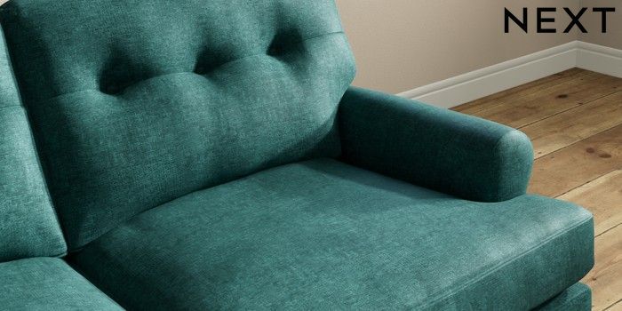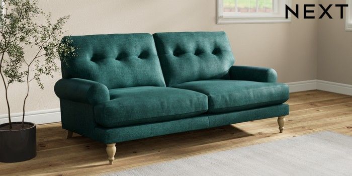 7.2.10 Erin Buttoned Back Deep Relaxed Sit 3 Seater Small Sofa Plush Chenille Dark Teal Green High Classic Turned - Light | Made Click here to use our website with more accessibility support, for example screen readers
