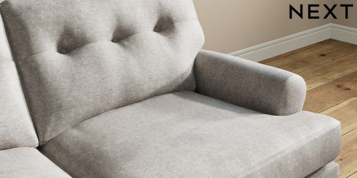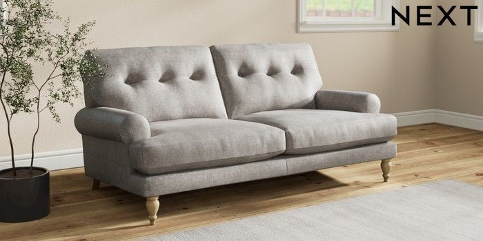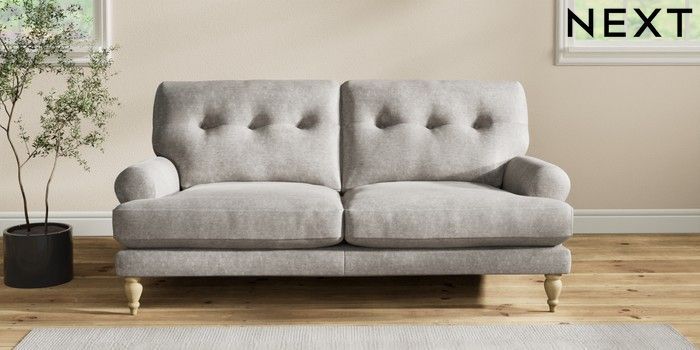 7.2.10 Erin Buttoned Back Deep Relaxed Sit 3 Seater Small Sofa Plush Chenille Light Grey High Classic Turned - Light | Made Click here to use our website with more accessibility support, for example screen readers