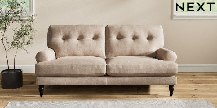 7.2.10 Erin Buttoned Back Deep Relaxed Sit 3 Seater Small Sofa Plush Chenille Mid Natural High Classic Turned - Dark | Made Click here to use our website with more accessibility support, for example screen readers