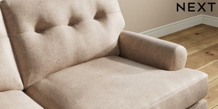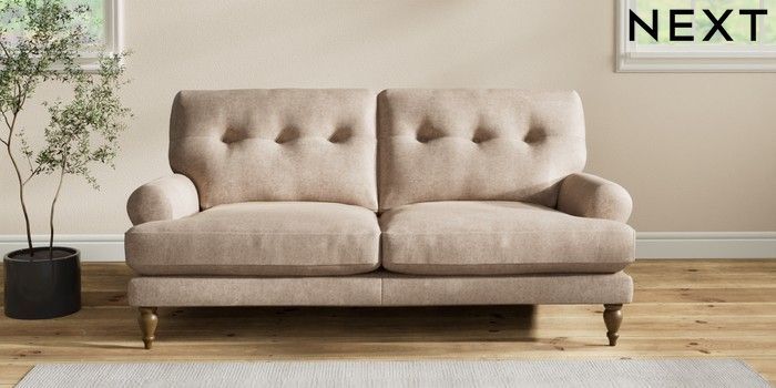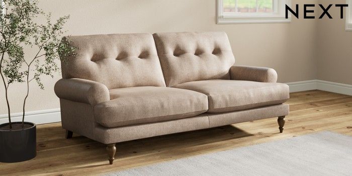 7.2.10 Erin Buttoned Back Deep Relaxed Sit 3 Seater Small Sofa Plush Chenille Mid Natural High Classic Turned - Mid | Made Click here to use our website with more accessibility support, for example screen readers