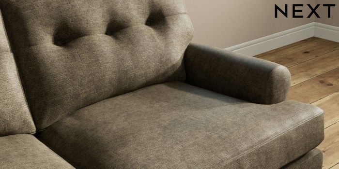7.2.10 Erin Buttoned Back Deep Relaxed Sit 3 Seater Small Sofa Plush Chenille Moss Green High Classic Turned Chrome Castor - Mid | Made Click here to use our website with more accessibility support, for example screen readers