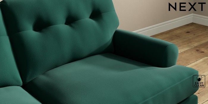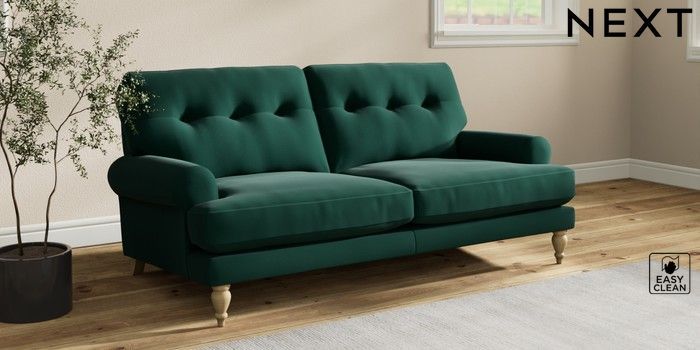 7.2.10 Erin Buttoned Back Deep Relaxed Sit 3 Seater Small Sofa Plush Velvet Easy Clean Bottle Green High Classic Turned - Light | Made Click here to use our website with more accessibility support, for example screen readers