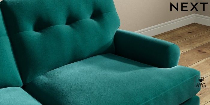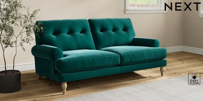 7.2.10 Erin Buttoned Back Deep Relaxed Sit 3 Seater Small Sofa Plush Velvet Easy Clean Juniper Green High Classic Turned - Light | Made Click here to use our website with more accessibility support, for example screen readers