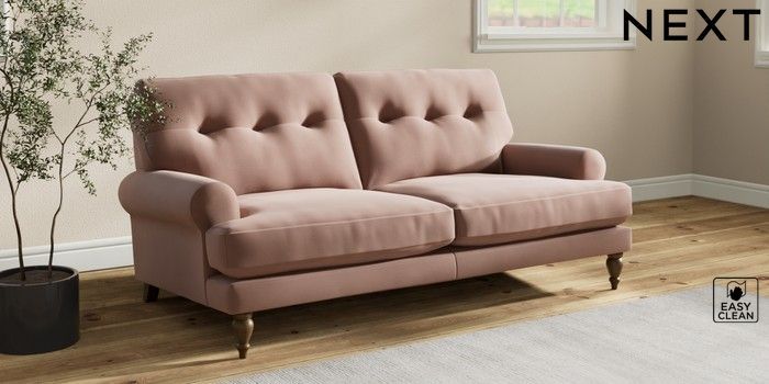 7.2.10 Erin Buttoned Back Deep Relaxed Sit 3 Seater Small Sofa Plush Velvet Easy Clean Mid Natural High Classic Turned - Mid | Made Click here to use our website with more accessibility support, for example screen readers